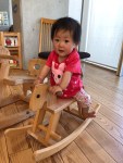 ついに木製の馬の乗り物に乗って遊ぶ事ができるようになりました。